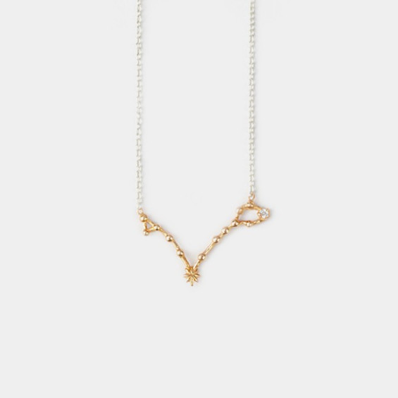 Our wax-carved Astrologia necklace made from gold vermeil and zircon.